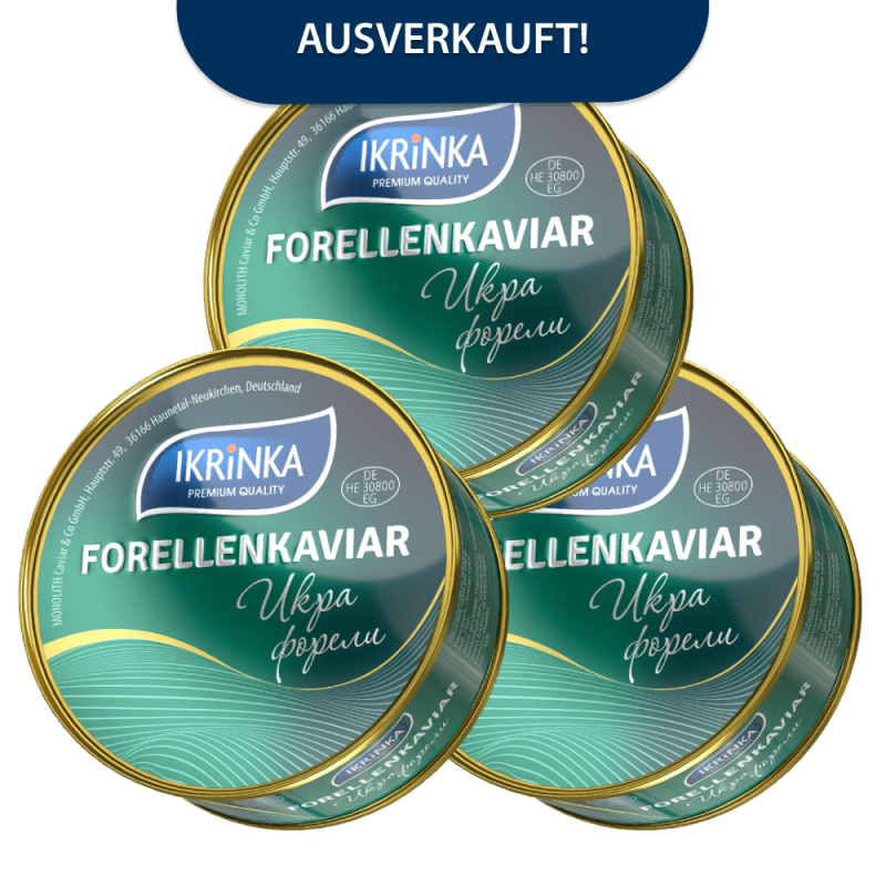 In den Warenkorb Keta Lachskaviar Set 3 x 300g 5.00 134,85 € -30% ab 94,40 € inkl. 7% MwSt. | zzgl. Versand